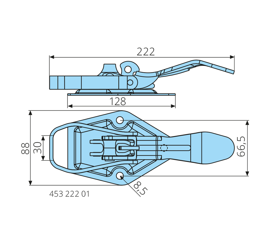 45322201 - Exzenterverschluss, mit automatischer Sicherung, dänisches Modell, verzinkt - Übersicht