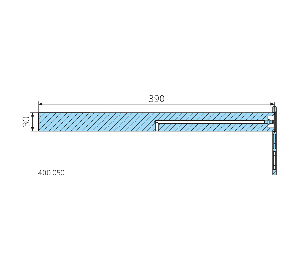 400050 - Achse für Polyamidrollen, 30x390mm, mit Schmierung & Sicherung, S355J2 - Übersicht