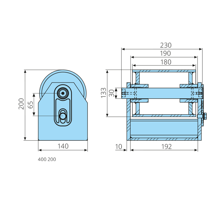 30-133-180/190mm, H=200mm, Achsschmierung, Messingbuchse