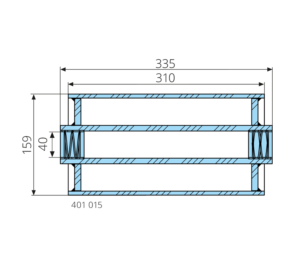 40-159-310/335mm, durchgehendes Rohr, Messingbuchse