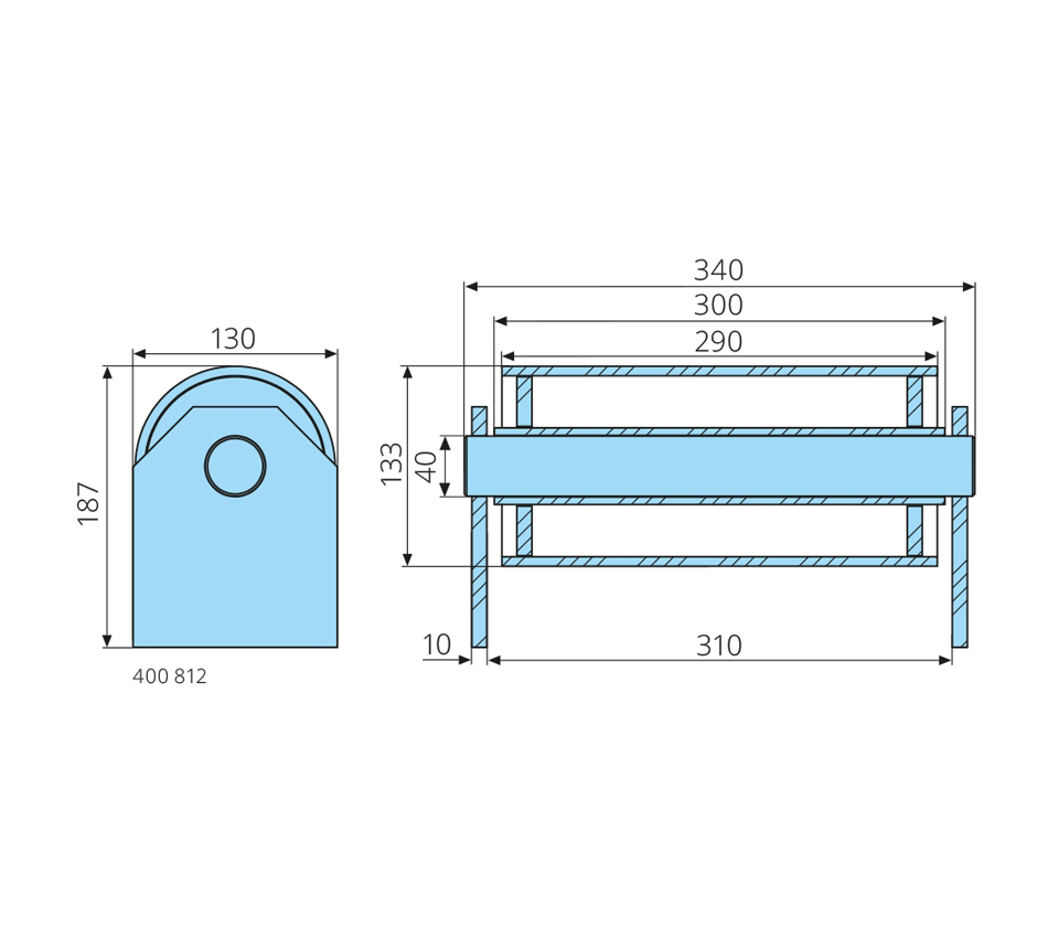 40-133-290/300mm, H=187mm, durchgehendes Innenrohr