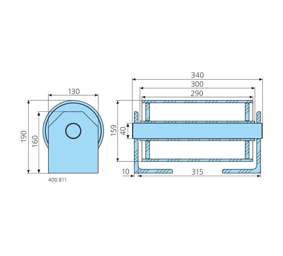 40-159-290/300mm, H=190mm, durchgehendes Innenrohr