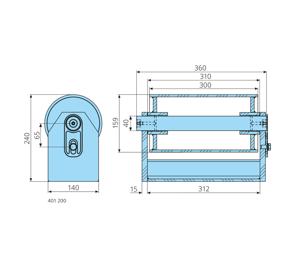 40-159-300/310mm, H=240mm, Achsschmierung, Messingbuchse