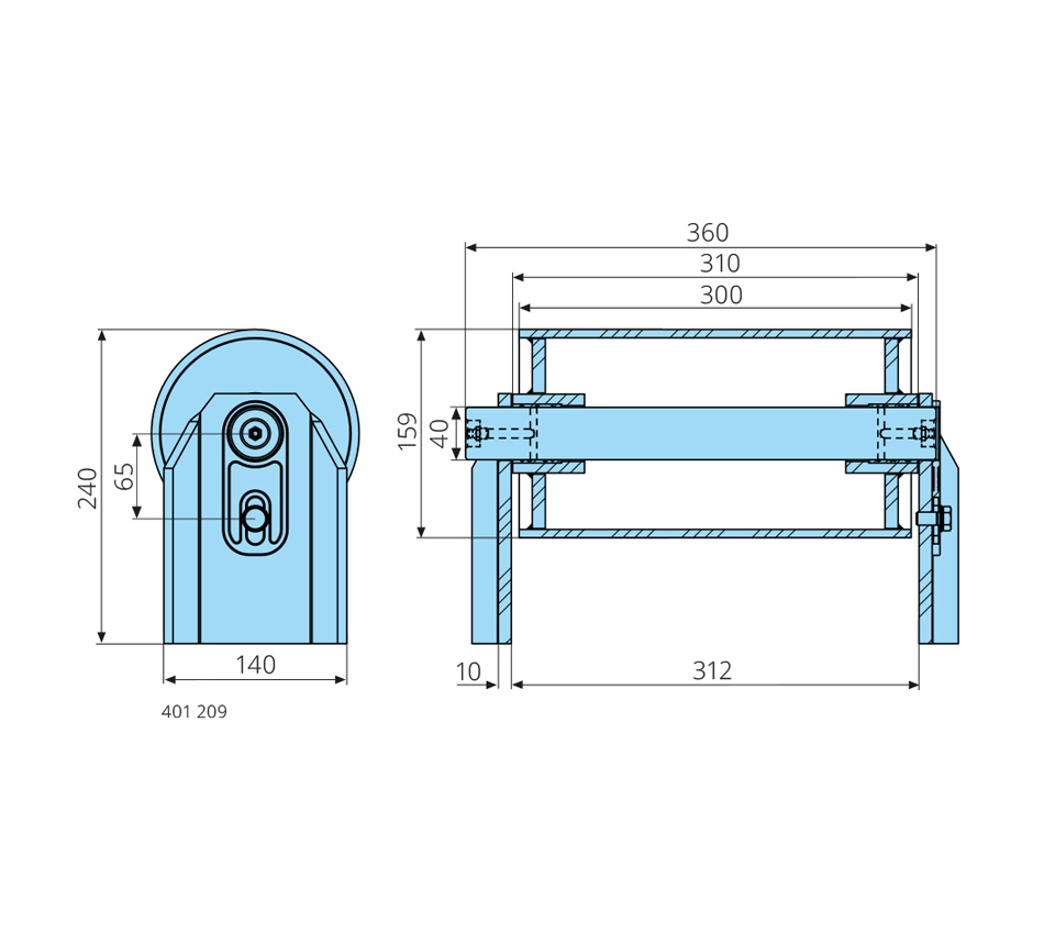401209 - Stahlrolle komplett, 40-159-300/310mm, H=240mm, Achsschmierung, Messingbuchse - Übersicht