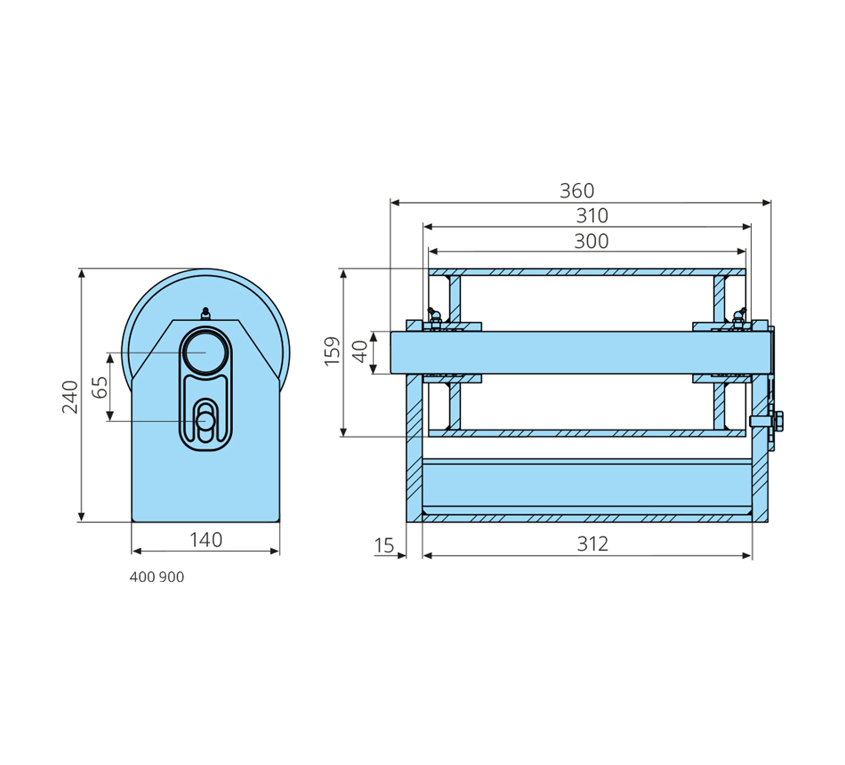 40-159-300/310mm, H=240mm, Buchsenschmierung, Messingbuchse