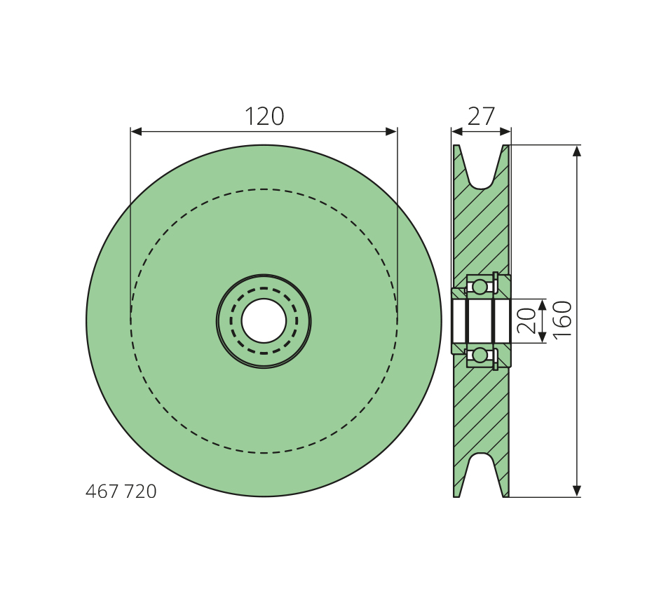 467720 - Drahtführungsrolle, 20-160-27mm, PA6, mit Lager, Typ BOA - Übersicht