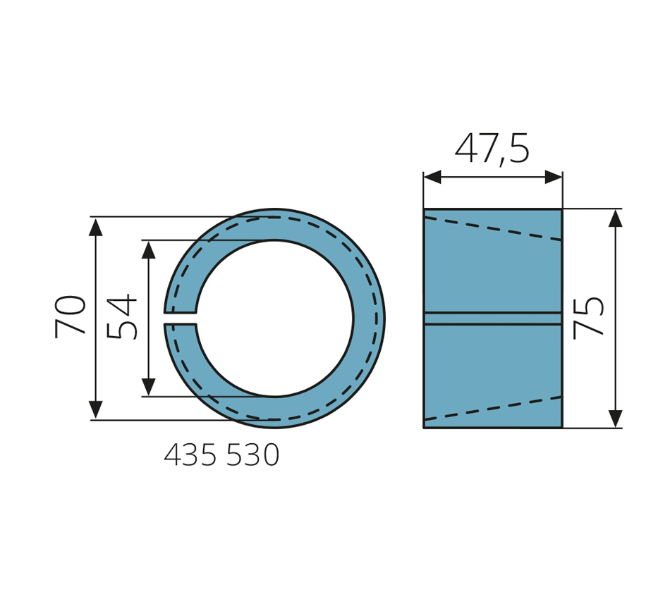 435530 - Spannbuchse, 54/70x75x47,5mm, für Bolzen 435 526 /-529, 2 benötigt für einen Bolzen, konisch, Typ TE - Übersicht