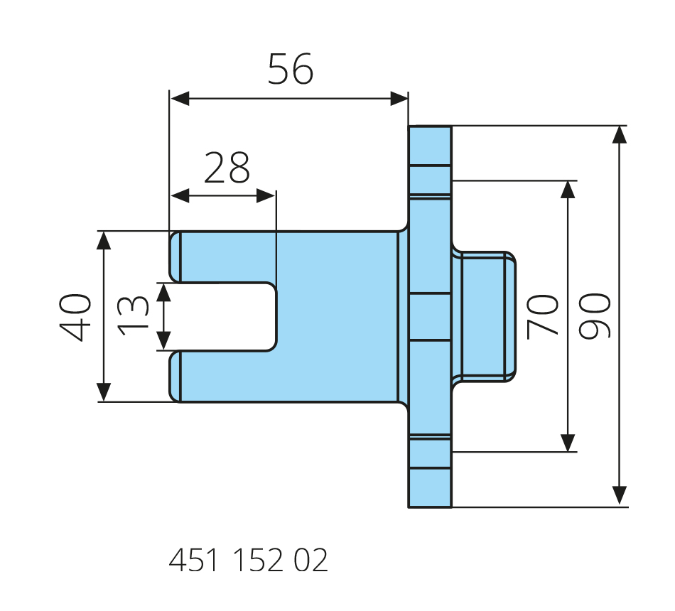 D=40mm, L=56mm, slot 13x28mm, square 30x30mm, cast steel