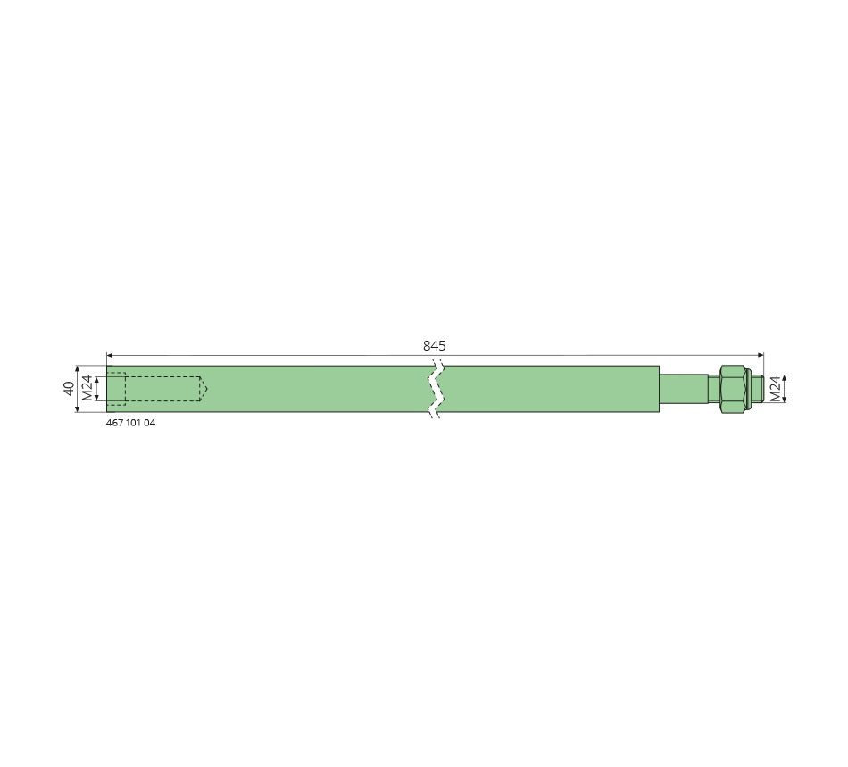 40x845mm, S355J2, avec écrou, type PAAL, pour hampes d'aiguille références 467 101 03 /-10