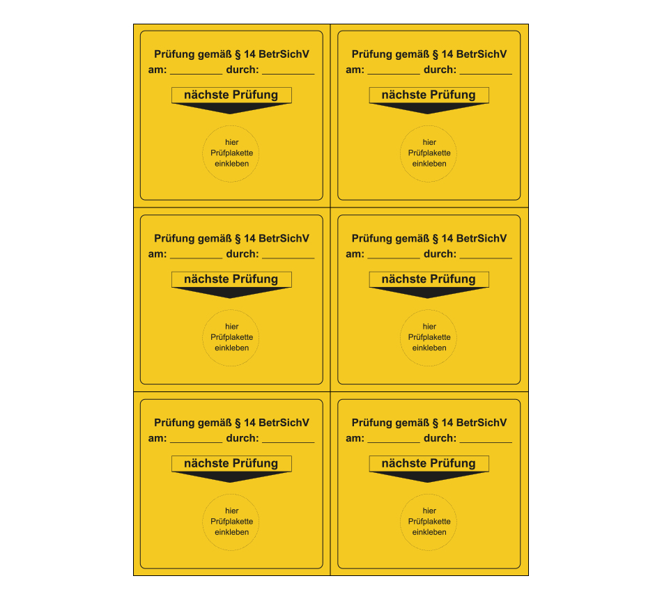PVC Grundaufkleber  Prüfung gemäß § 14 BetrSichV