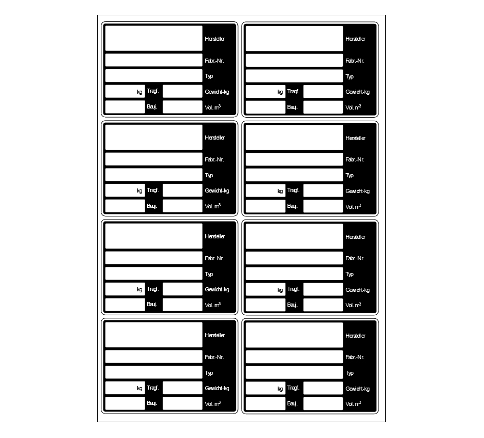 Plaque d'identification aluminium Autocollant pour multibenne95x65mm, 8 pièces/feuille
