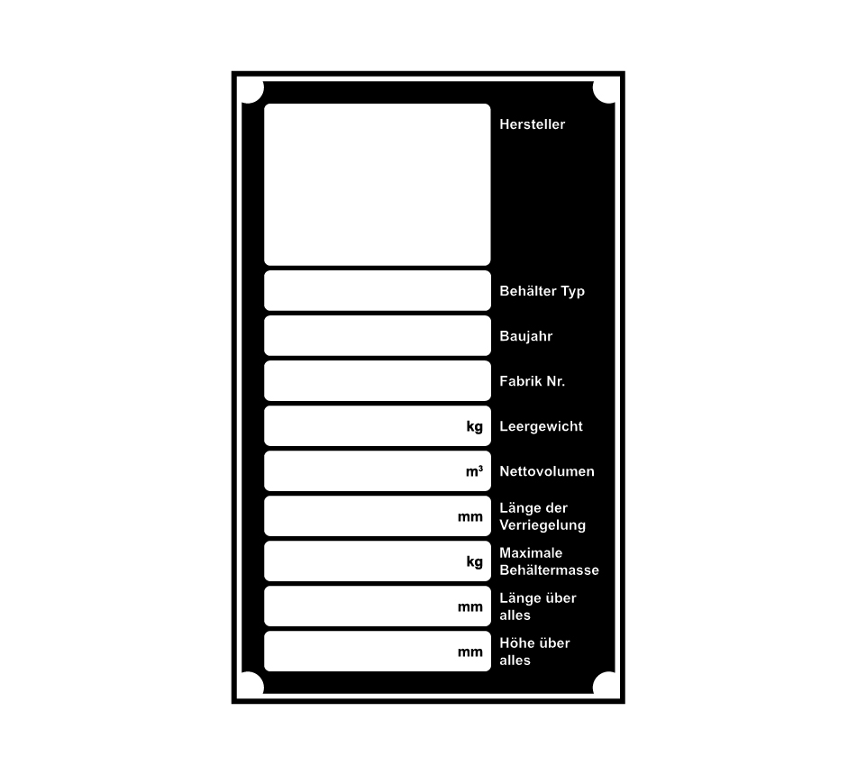Plaque d'identification aluminium pour bennes amovibles97x156mm