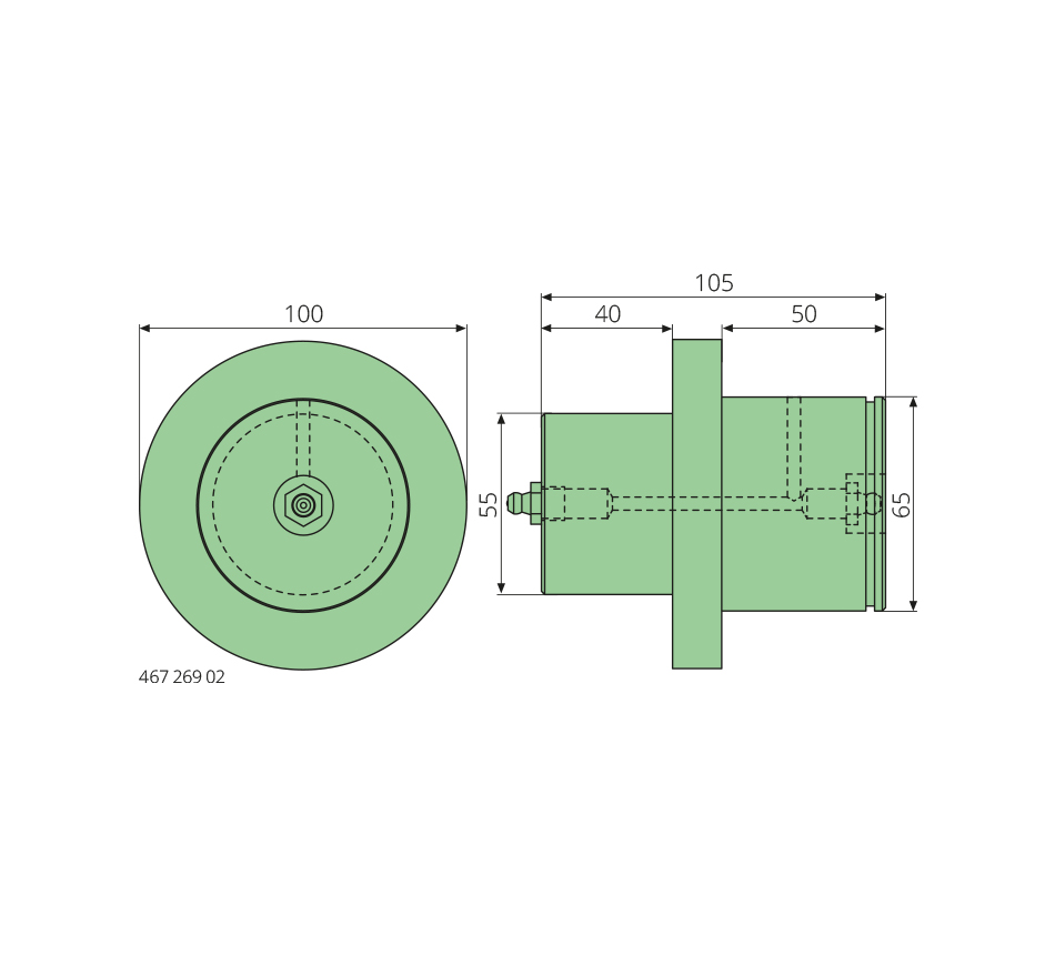 65x105mm, S355J2, avec raccord fileté de graissage, type PAAL, pour roue de poussoir réf. 467 271