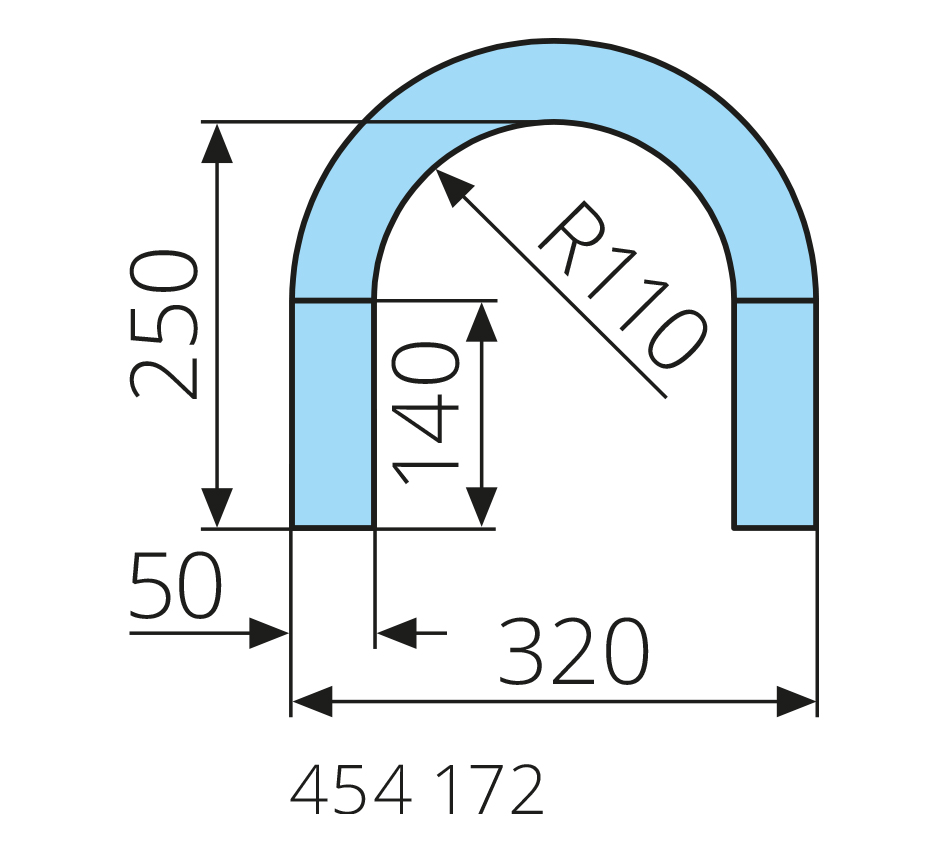 Axe de préhension50x250x320mm, R110, déformé à froid, S355J2+N