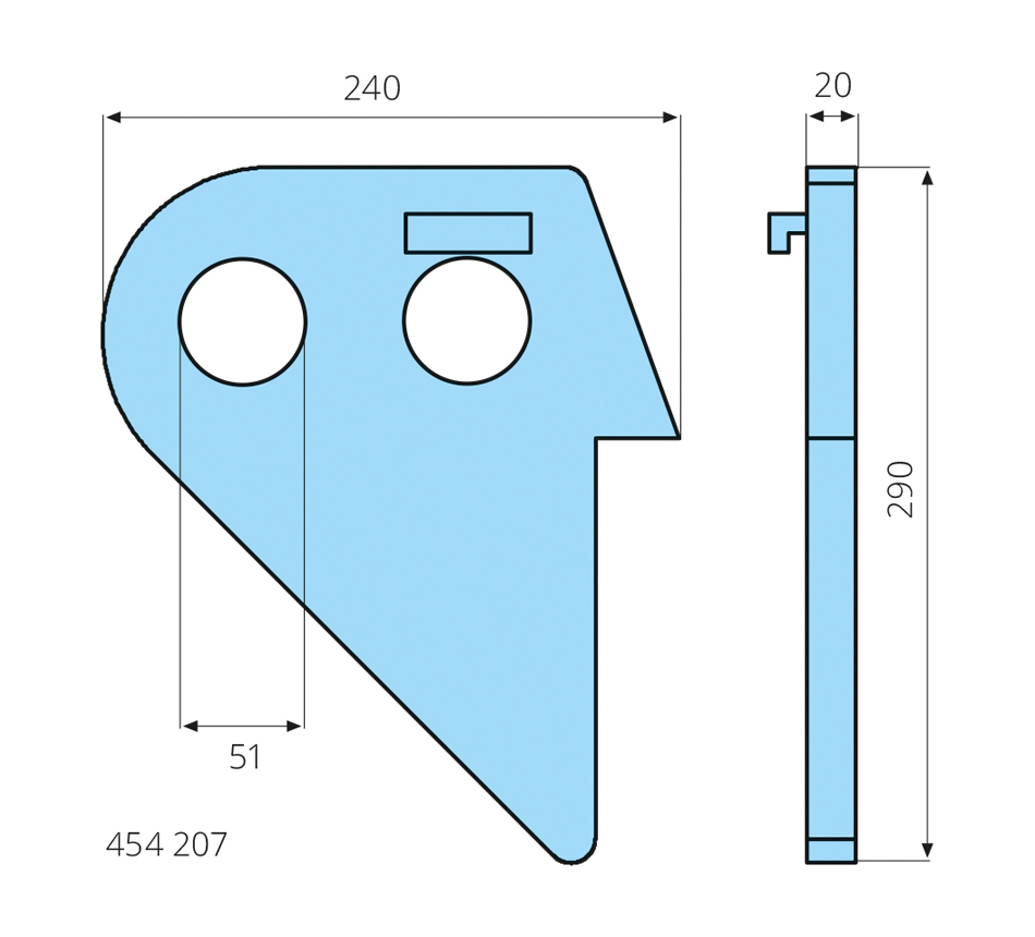 Tôle latéraledroite, avec sécurité à boulon, pour axe de préhension rabatable 454 200