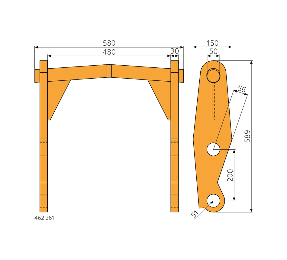 Axe de préhension rabatable50x580mm, S355J2+N, entraxe des trous 200mm, type HUSMANN