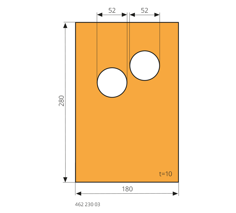 Tôle latérale280x180x10mm, intérieur, sans sécurité boulon, type HUSMANN