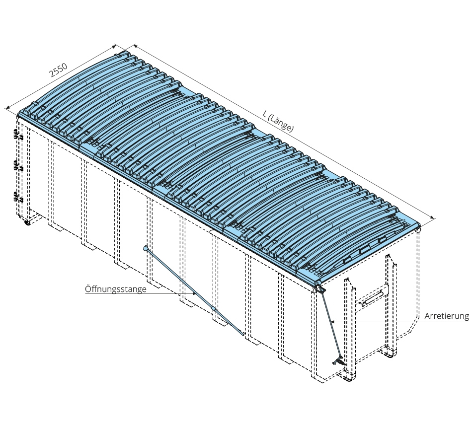 Bâchage rigide "ROLLDECKEL"B=2550mm, longueur selon les spécifications (5000-7000mm)