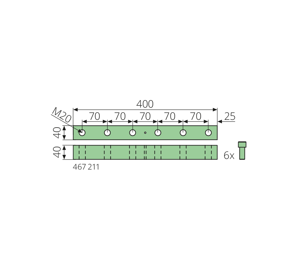 400x40x40mm, avec pousseur (Freistoßer), MS58, trous M20, avec visserie, type PAAL