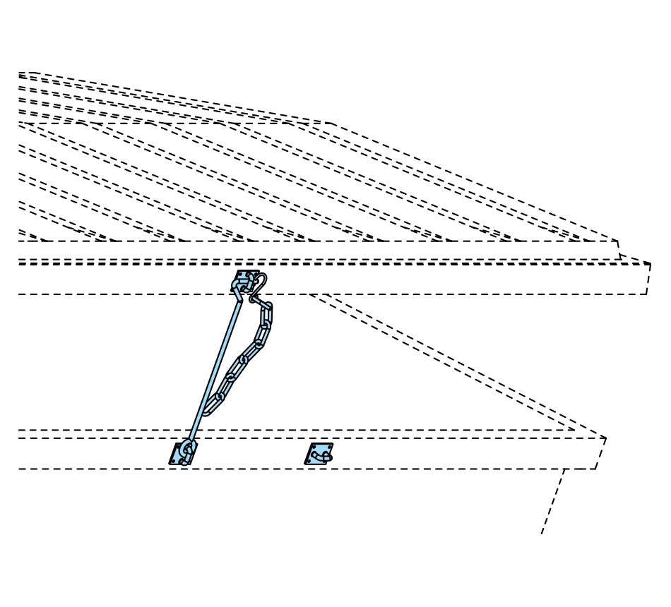 L=350mm, zingué pour tous les couvercles DURAFLEX possédant un largeur supérieure à 800mm