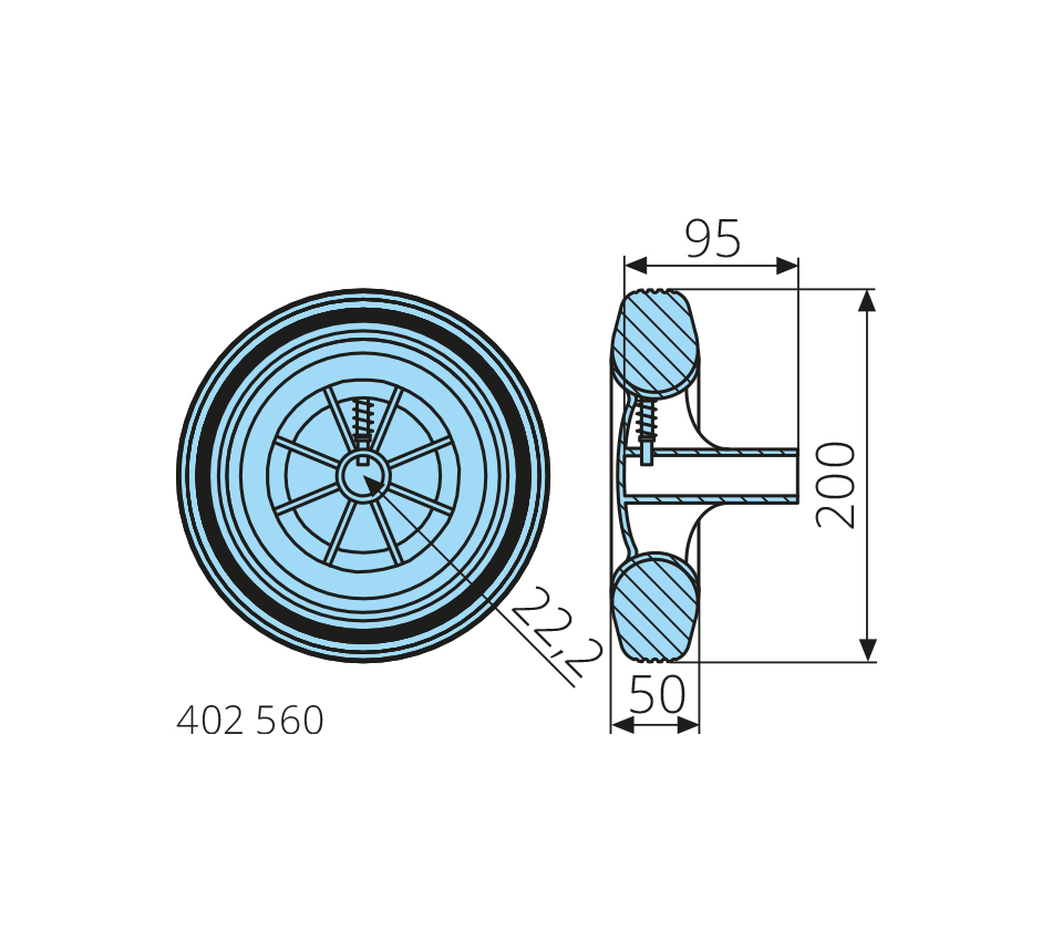 200x50mm, dynamic load capacity 60kg, rubber tyre, plastic hub