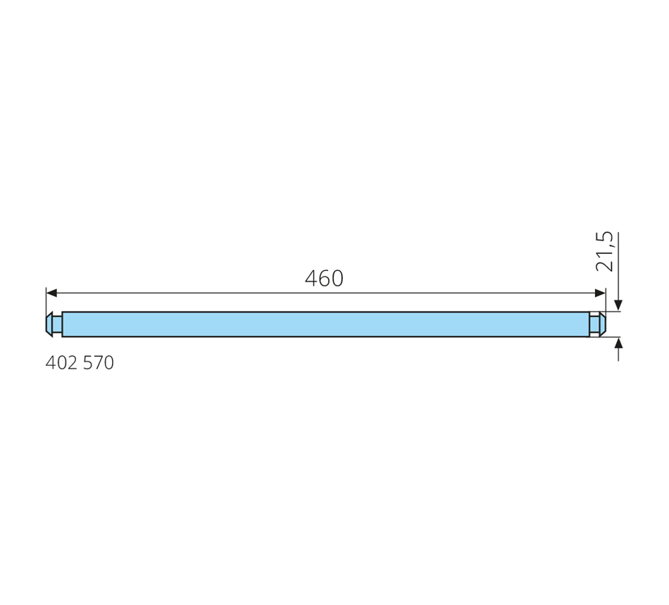 Shaft for extended hub wheel21,5x460mm, for 120 l containers, galvanized, solid material