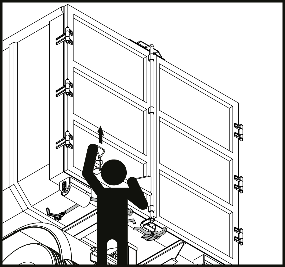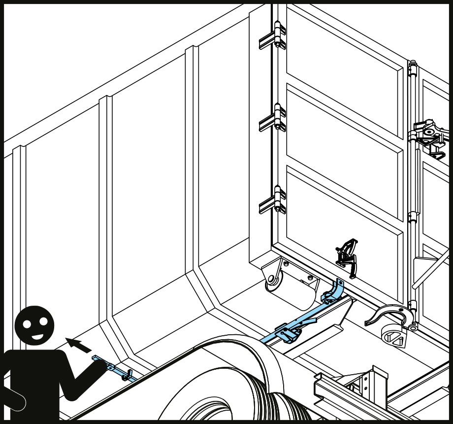 · the lever is operated from a safety distance of 1500 mm from the doors and locks the doors in an open position