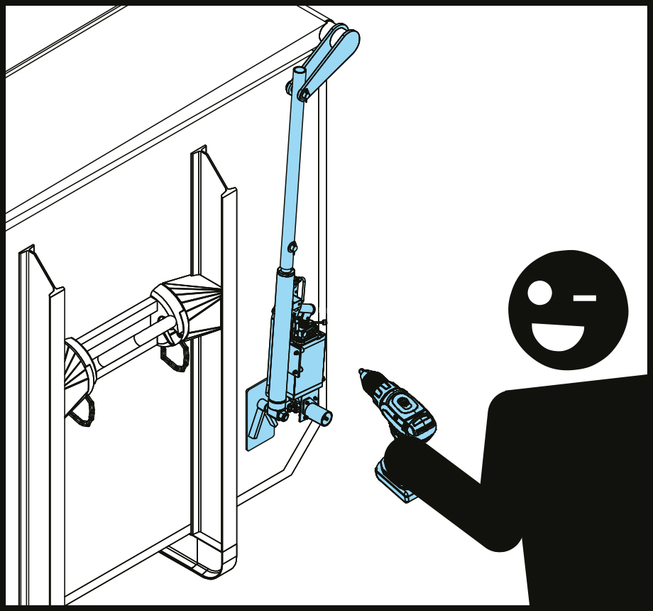The solution: REWALD's lid hydraulic with adapter for cordless screwdriver