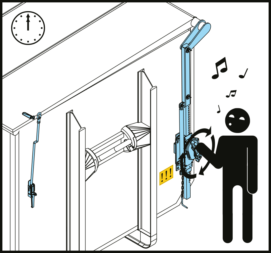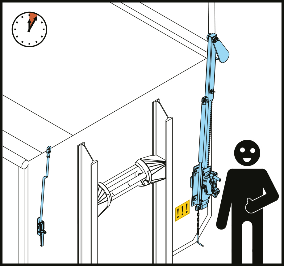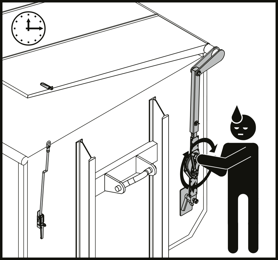 · the gas spring (5000N) reduces the effort & time so much that one-handed cranking is possible