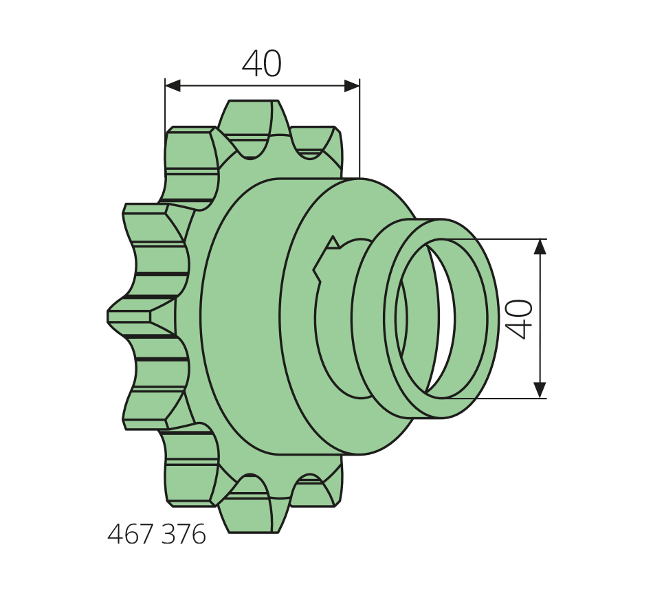Pignon à chaîne de moteur complet40-109-40mm, 12 dents, alésage avec rainure, avec bague d'espacement, type PAAL