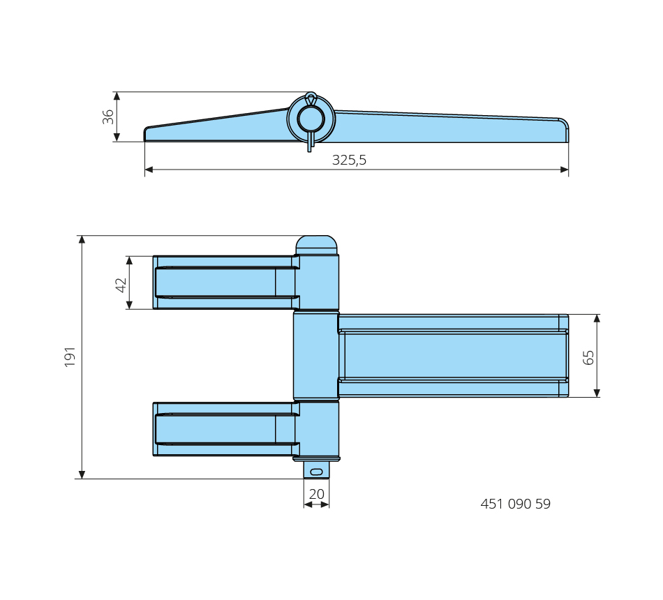 Charnière droiteforgé, 20x191mm, Graisseur encastré