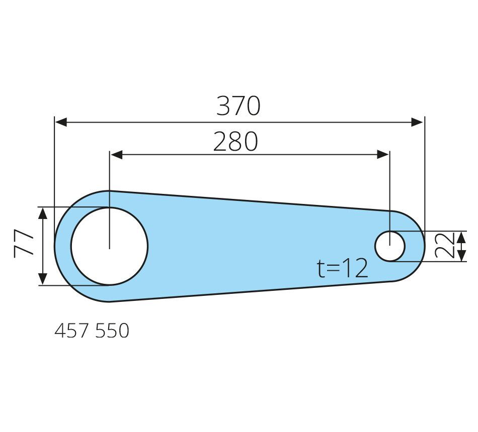 L=370mm, t=12mm, d=77mm, bore for bolt d=22mm
