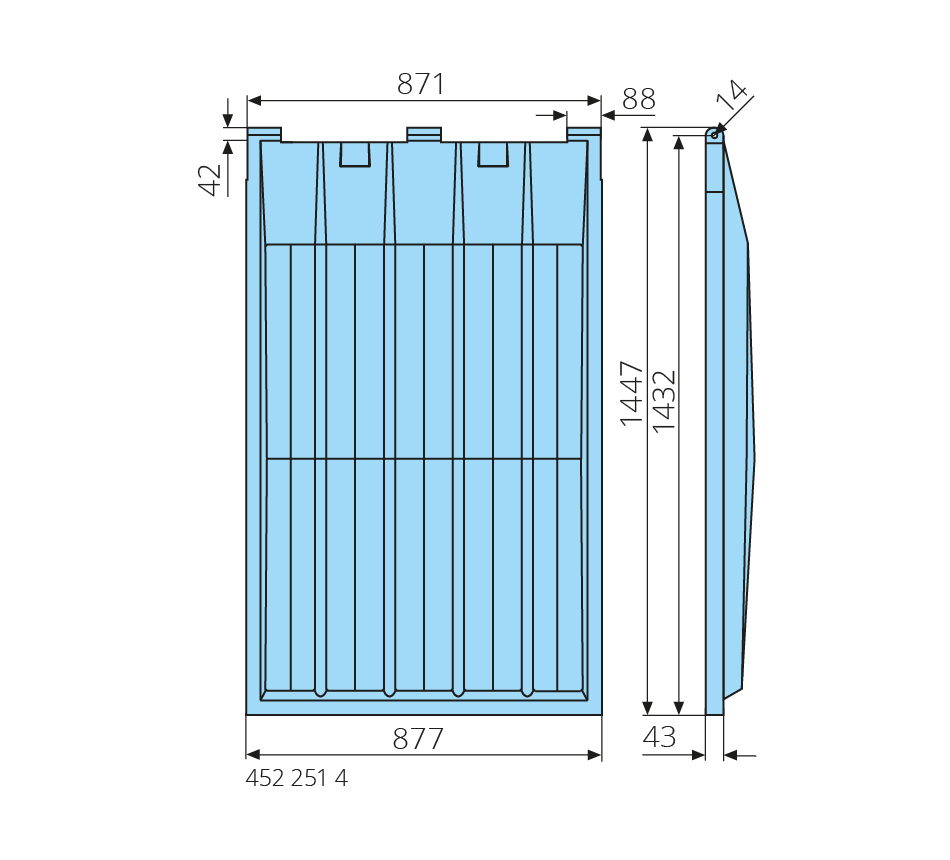 Couvercle DURAFLEX FL3457877x1447mm, plastique technique, orange (similaire à RAL 2010)