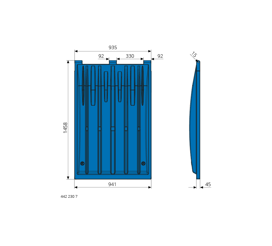 941x1458mm, plastique technique, bleu clair (similaire à RAL 5015)