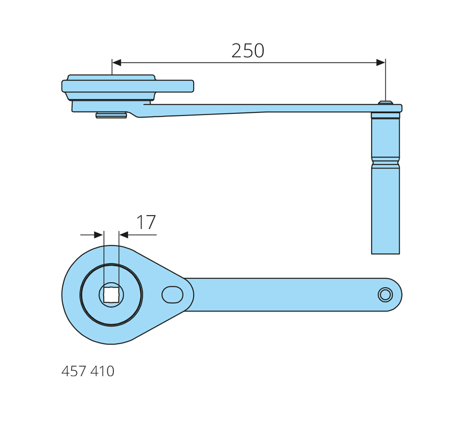Manivelle de sécurité aluminiumL=250mm, carré 17mm, avec poignée rabattable