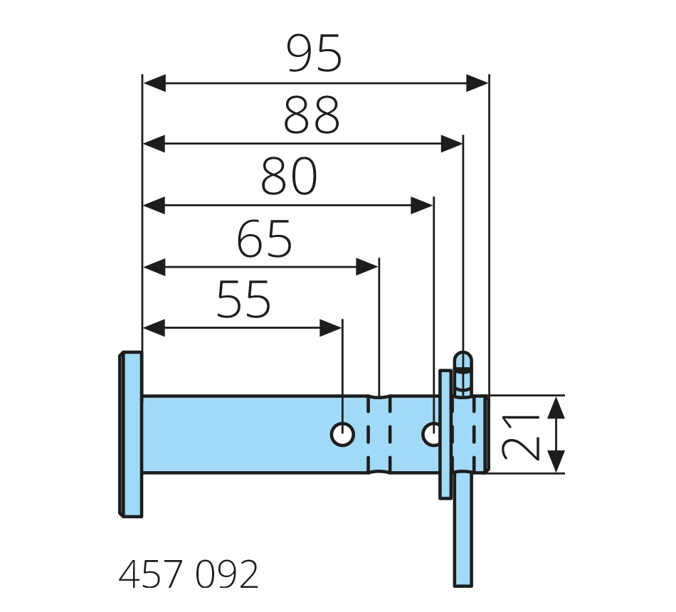 21x95mm, avec goupille & rondelle, 4x forages, pour tubes de prolongation & crics