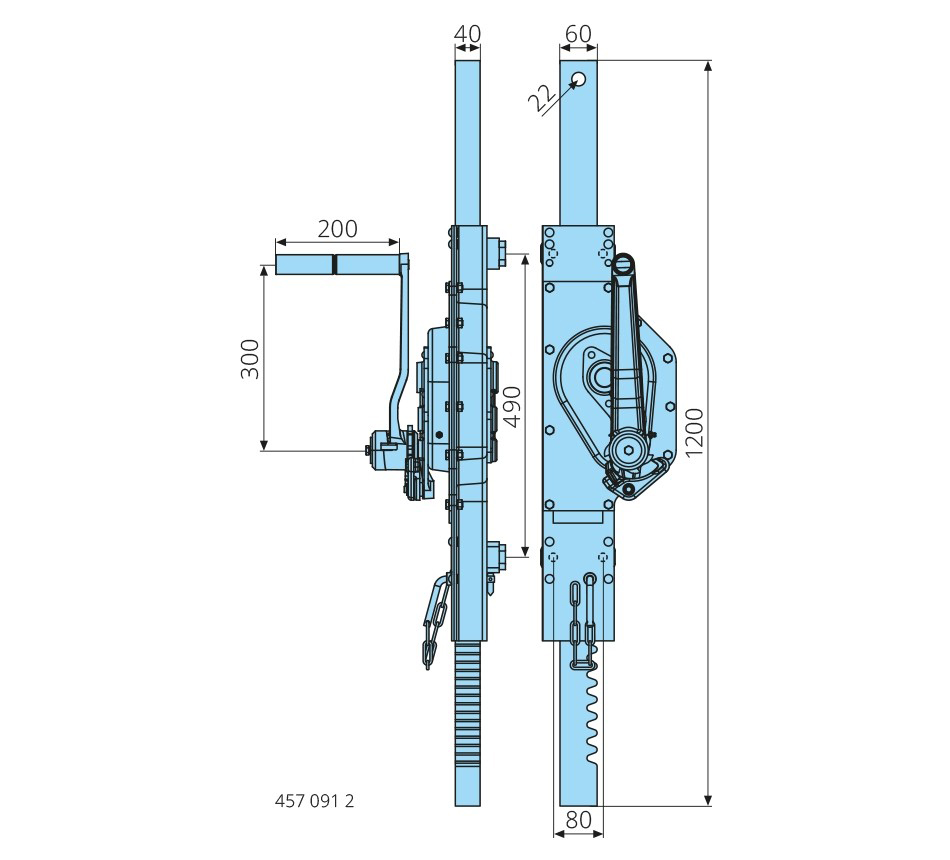 Cric à crémaillère mural pour conteneurscapacité de levage 5t, charge admissible 10t, course 800mm, avec fiche de sécurité
