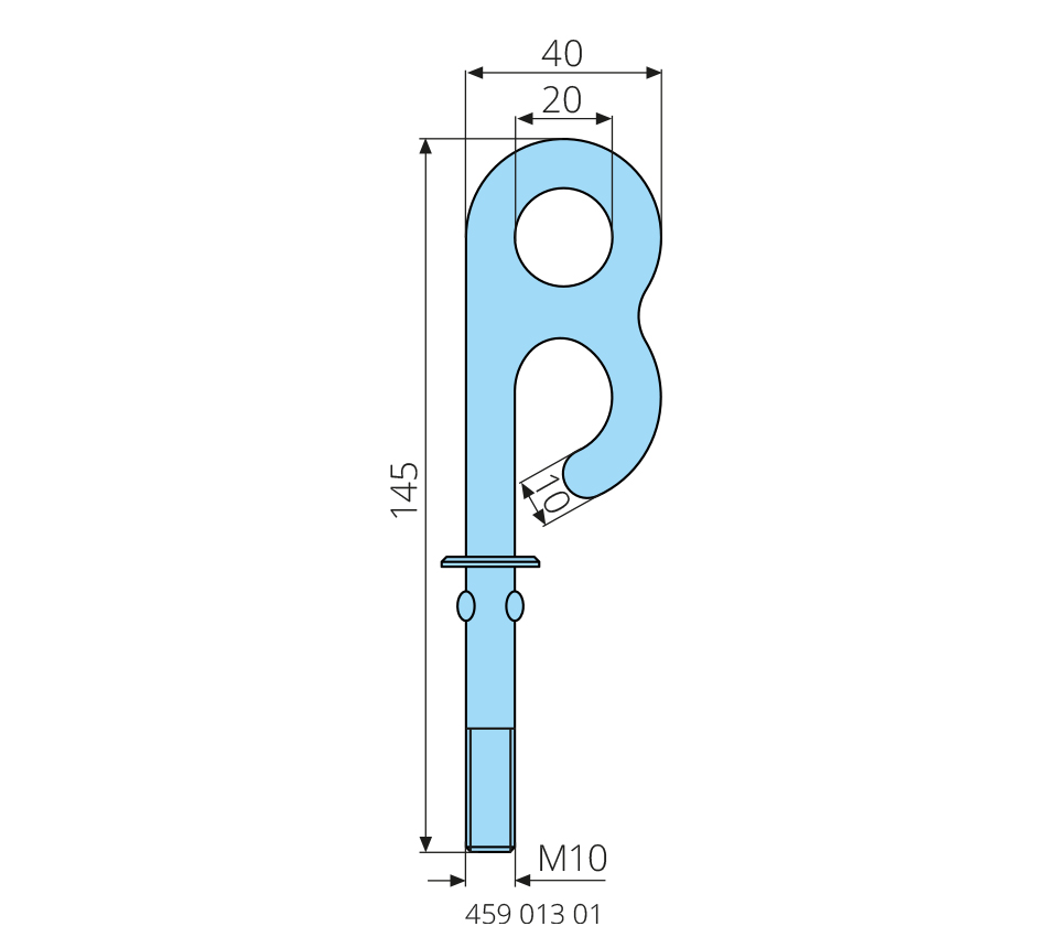 Crochet de bâche avec filetage10x145mm, M10, galvanisé, avec œillet