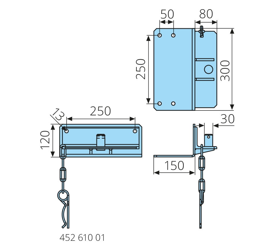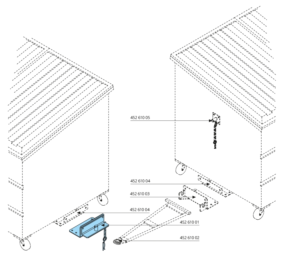 Embrayage300x230x120mm, pour euroconteneur 2,5m³, galvanisé