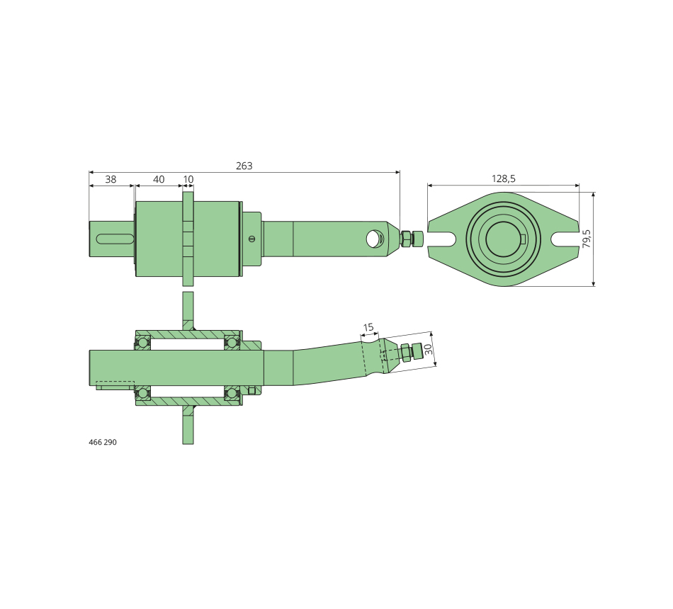 30x263,3mm, 42crMo4, avec roulements & vis, type BOLLEGRAAF