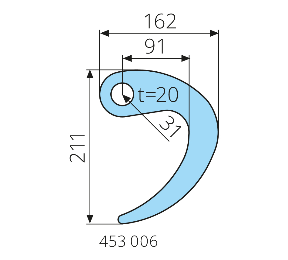 Door locking hookd=31mm, t=20mm, flame cut, S355J2