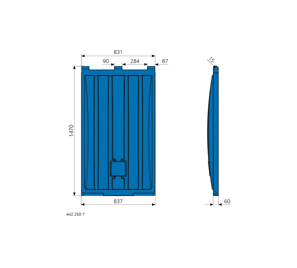 837x1470mm, plastic, light blue (similar to RAL 5015)