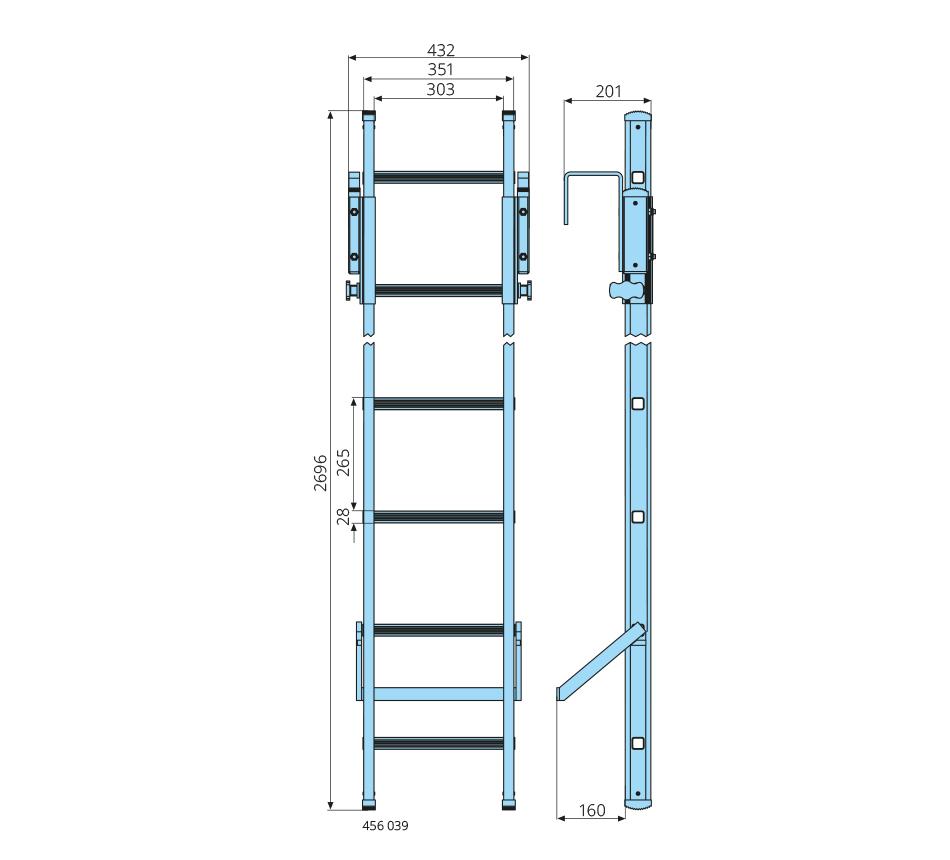 Échelle à suspendre10 échelons, 2696mm, selon DGUV uniquement avec barre de maintien 456 041 (disponible séparément)