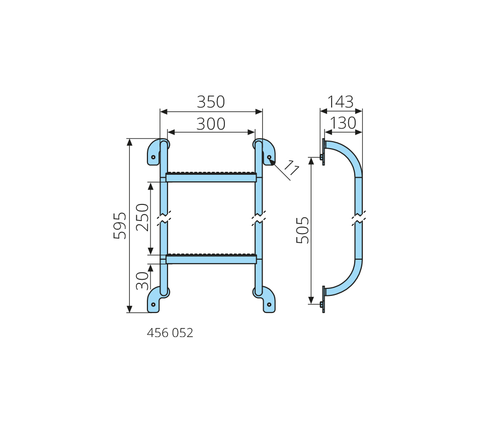 Échelle2 échelons, 595mm, galvanisé, à visser, acier, selon DGUV