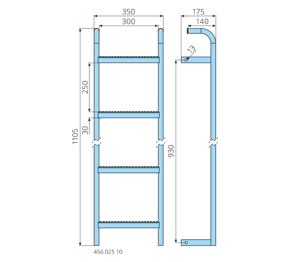 Échelle4 échelons, 1103mm, galvanisé, à visser, acier, selon DGUV