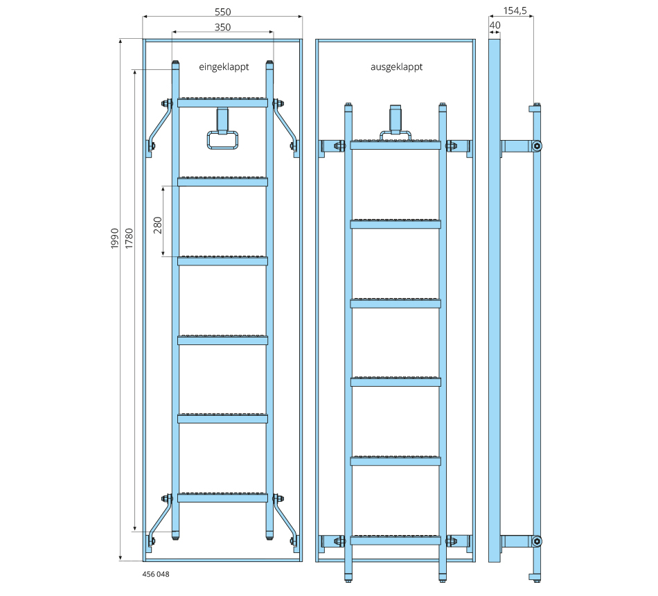 Echelle escamotable6 échelons, 1780mm, avec verrou à ressort 456 050, à souder, acier
