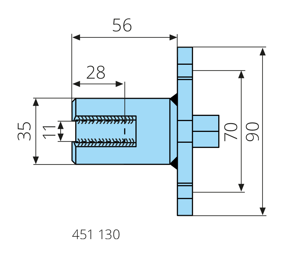 D=35mm, L=56mm, slot 11x28mm, hexagon SW17, with reinforcement plate
