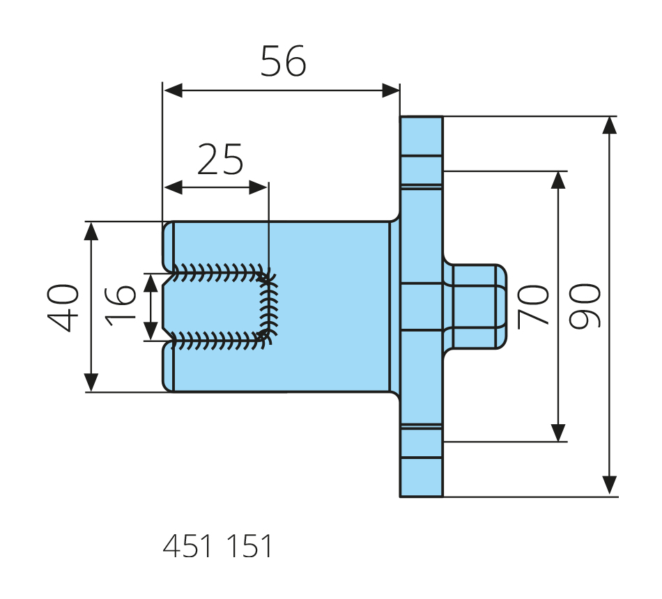 D=40mm, L=56mm, slot 16x28mm, hexagon SW17, with reinforcement plate