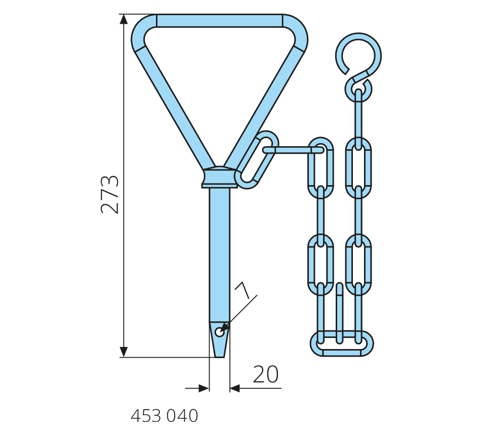 Fiche de verrouillageD=20mm, type A, galvanisé, avec chaîne