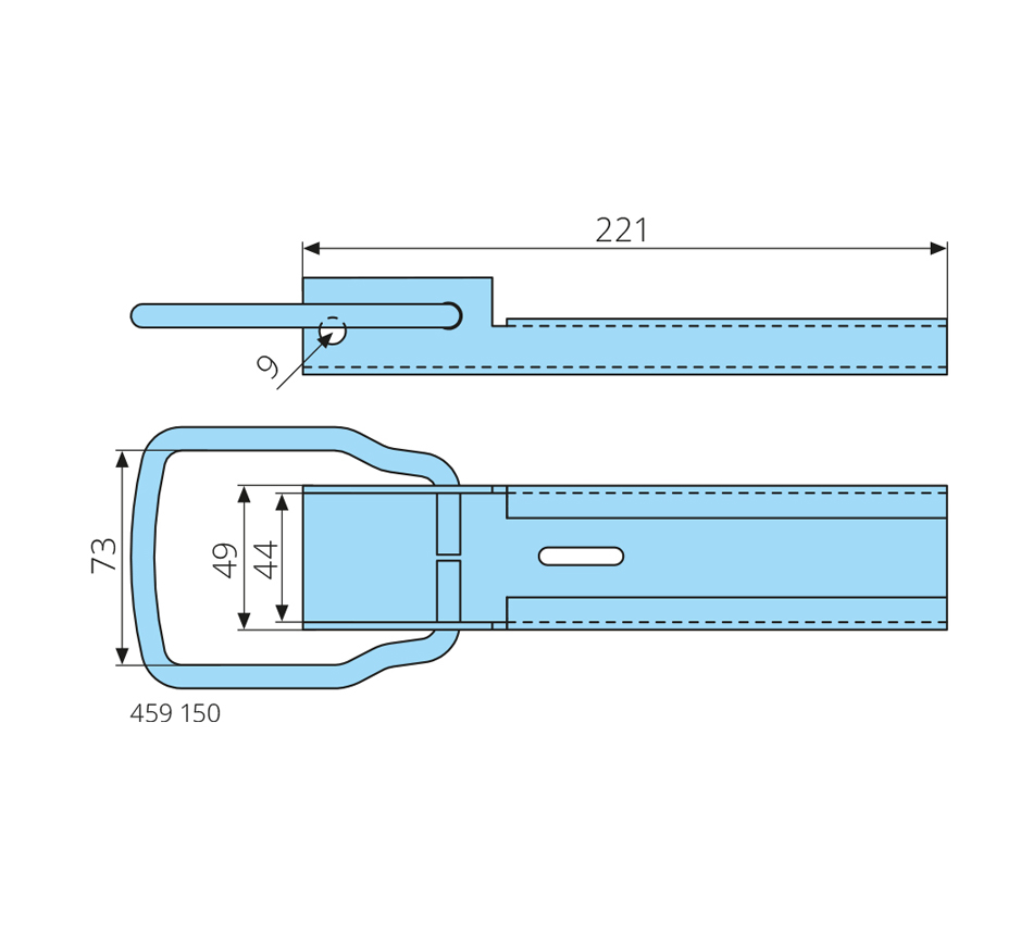 221x49mm, S235JR, zingué, exécution courte, type OTTO, verrouillable